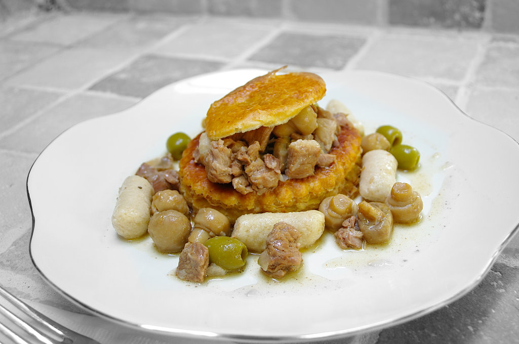 - ajouter l’eau des champignons, les olives, une deux ou trois cuillères de fond de veau en poudre et éventuellement un peu d’eau