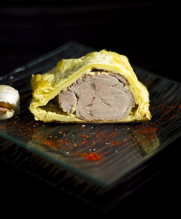 - Saisir le filet mignon piqué d’ail, sel, poivre. Puis le laisser refroidir
