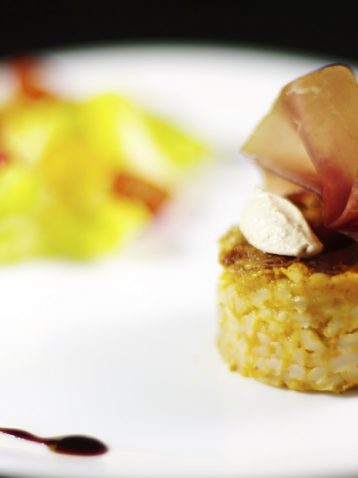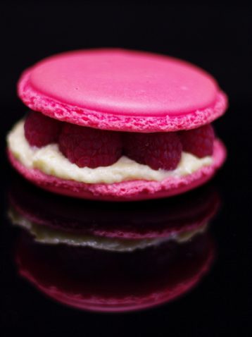 rehaussé d’une goutte de rosée au glucose et d’une framboise fraîche.